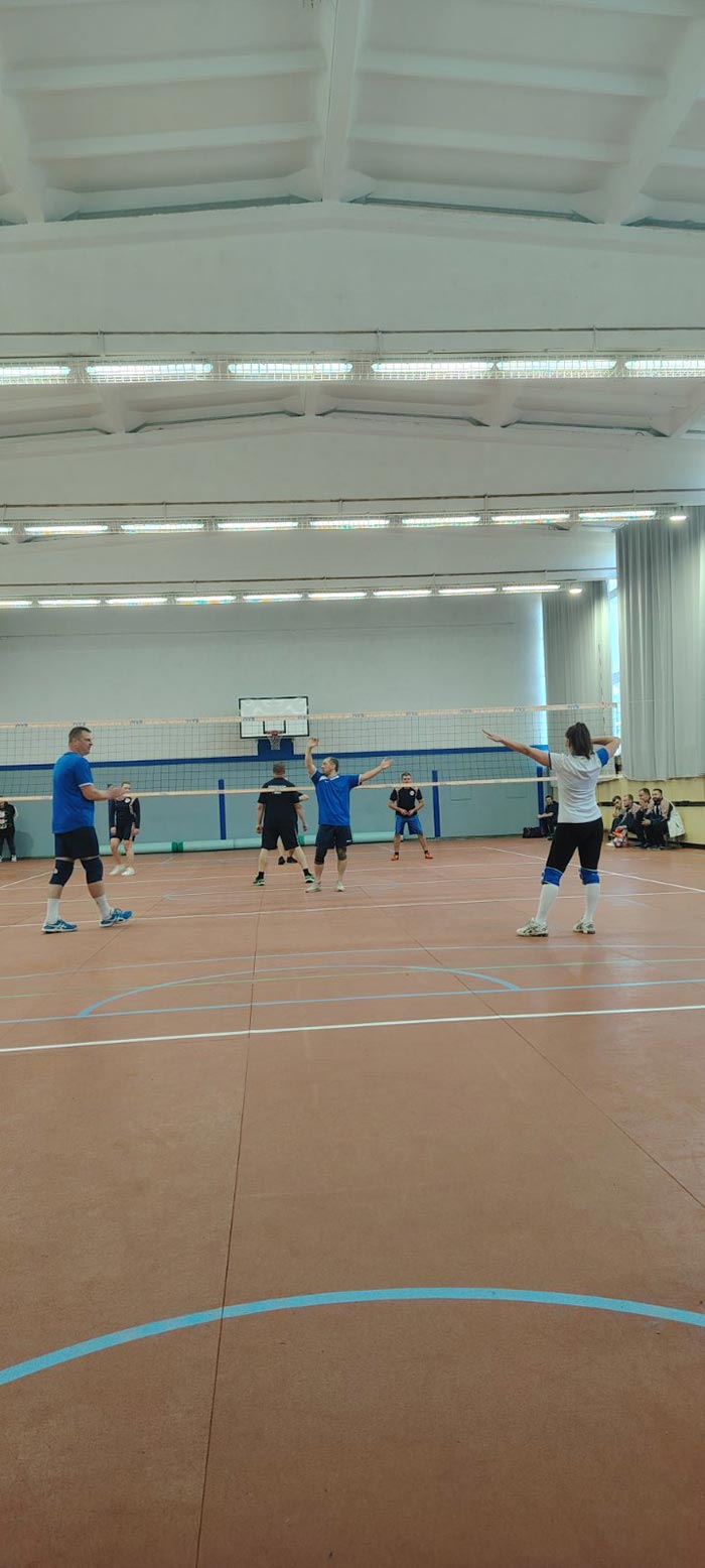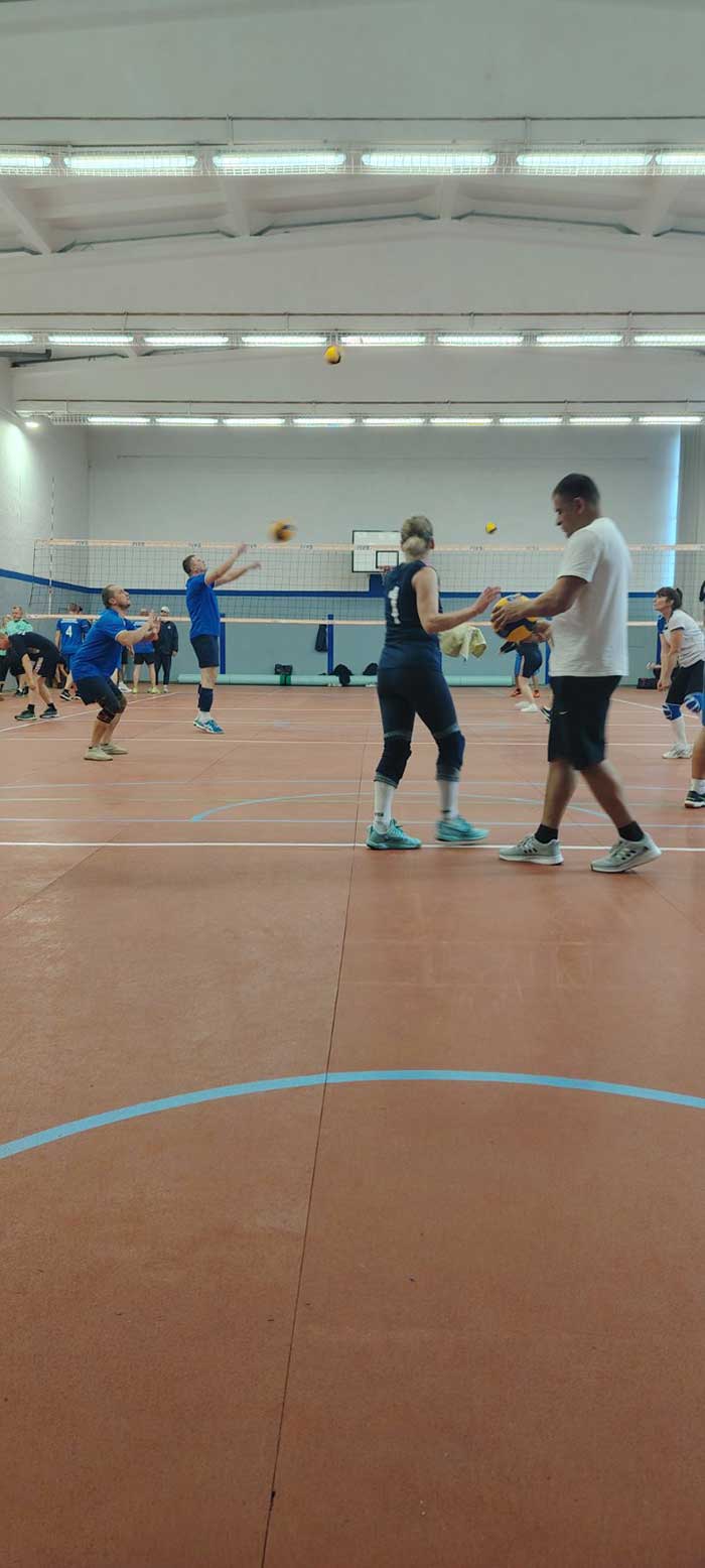 - Волейбол — борьба за мяч была напряженной и захватывающей.